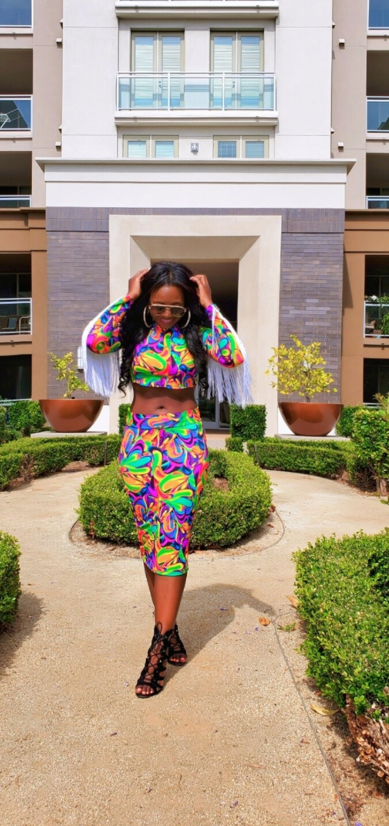 Open Back Fringed Top that can be used for the beach/pool or paired with the matching skirt.